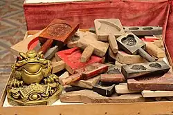 Tao kuih always have beautiful patterns on it because of tao kuih mould. Tao kuih moulds have various kinds of patterns in different area, which is mainly make from peach woods. Peaches also reflect longevity and good marriage, and most of the tao kuih will have a “寿” (longevity) or “福” (luck) Chinese character on it. The patterns of those moulds are always very exquisite, so peach wooden moulds need to be carved carefully. It had developed to be a kind of engraving art, which enriches Chinese carving culture.[4]