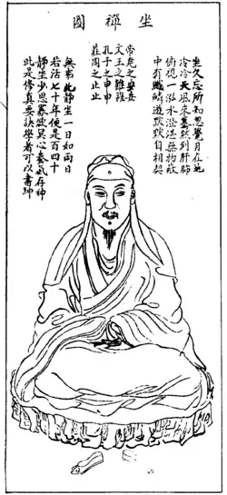 The (c. 4th–3rd centuries BCE) Daoist Zhuangzi refers to meditation in more specific terms than the Tao Te Ching. Two well-known examples of mental disciplines are Confucius and his favorite disciple Yan Hui discussing xinzhai (心齋; "heart-mind fasting") and zuowang "sitting forgetting".[26] In the first dialogue, Confucius explains xinzhai.