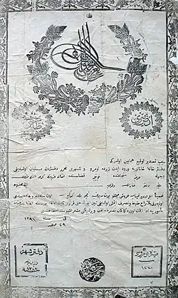 Tapu (also Tabu) was a permanent lease of state-owned arable land to a peasant family in the Ottoman Empire. The term was also used to indicate the title deed that certified tapu rights.