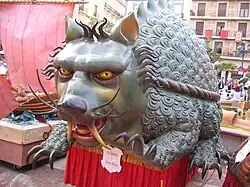 The Tarasca (Spanish for Tarasque) is one of the statues of the Corpus Christi procession, paraded through a number of Spanish cities, and elsewhere throughout the Iberian peninsula,[106] for example, the cities of Granada, Toledo,[107] and Valencia,[108][109] and the city of Madrid.[110]