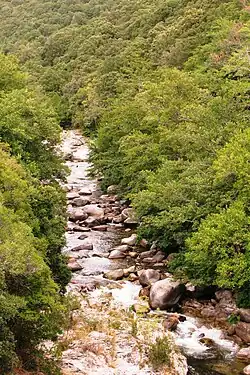 The Taravo (Corsican: Taravu) is a river on the island of Corsica, France. It is 65.3 km (40.6 mi) long.[1] Its source is in the mountainous middle of the island, southeast of Monte Renoso. It flows generally southwest, through Palneca, Cozzano and Guitera-les-Bains. It ends in the Mediterranean Sea in Serra-di-Ferro, west of Propriano. Its entire course is in the Corse-du-Sud département.