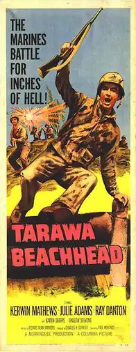 Tarawa Beachhead is a 1958 war film directed by Paul Wendkos. It stars Columbia Pictures contract star Kerwin Mathews in his first leading role and the husband and wife team of Ray Danton and Julie Adams.[1] The working title of the film was Flag over Tarawa and was originally to have starred Ronald Reagan.[2]