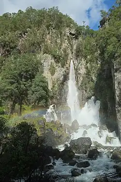 The Te Arawa and Ngāti Awa tribes have traditional associations with this site. Ngāti Rangitihi, one of the eight Te Arawa tribal groups, are the current guardians of the area and consider the site of the waterfall a sacred place.[5]