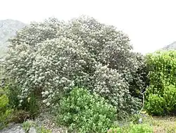 Tarchonanthus camphoratus (known as camphor bush for its scent, or leleshwa in Kenya), is a shrub or small tree which is widespread in Africa south of the Sahel, and in Yemen.