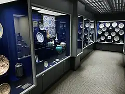 Further enriching the collection are ceramics from the sgraffito tradition, originating from Egypt, Syria, Iran, and Central Asia.[14][19][20] These pieces are characterised by their distinctive scratched designs, revealing contrasting colours beneath the surface glaze. The collection also includes exquisite Timurid ceramics, known for their elaborate decoration and vibrant colours, Iznik ware and Safavid and Qajar tilework and pottery.[19] The museum aims to illustrate the evolution of Islamic pottery, tracing the development from the early, closely related Umayyad and Abbasid examples to the later, more intricate and colourful pieces such as Iznik tiles. This progression highlights the increasing sophistication and regional diversification of Islamic ceramic art.[19]