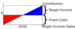 In cost accounting, target income sales are the sales necessary to achieve a given target income (or targeted income). It can be measured either in units or in currency (sales proceeds), and can be computed using contribution margin similarly to break-even point: