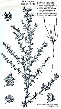- ^ a b Pammel, L. H. (1894). "Botany of Russian Thistle". Bulletins of the Iowa Agricultural Experimental Station. 3 (26). Iowa State University: Article 3 (pp. 8-25). S2CID 164349281.