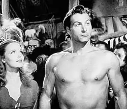 Tarzan's Savage Fury is a 1952 film directed by Cy Endfield and starring Lex Barker as Tarzan, Dorothy Hart as Jane, and Patric Knowles, serving as the sixteenth film of the Tarzan film series that began with 1932's Tarzan the Ape Man. While most Tarzan films of this series in the 1930s, 1940s and 1950s presented Tarzan as a very different character from the one in Edgar Rice Burroughs' novels, this movie does make some allusions to the novels.[2] It was shot in Chatsworth, California's Iverson Movie Ranch. The film was the last to be directed by Cyril "Cy" Endfield in the US. Finding himself one of Hollywood's film-makers blacklisted by the House Un-American Activities Committee he moved to Britain.[3] The film was co-written by Cyril Hume, who'd contributed substantially to the "Tarzan" series back in its bigger budget MGM days.[4] At 81 minutes, this is the longest Tarzan film since Tarzan's Secret Treasure in 1941. The film was followed by Tarzan and the She-Devil in 1953.