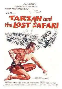 Tarzan and the Lost Safari is a 1957 action adventure film featuring Edgar Rice Burroughs' famous jungle hero Tarzan and starring Gordon Scott, Robert Beatty, Yolande Donlan and Betta St. John. Directed by H. Bruce Humberstone, it was the first Tarzan film released in color, Eastman Color.[2] The nineteenth film of the Tarzan film series that began with 1932's Tarzan the Ape Man and the first produced by MGM since 1942, it was filmed in Nairobi, British East Africa. The character of Jane does not appear in this motion picture. Released April 12, 1957, it was followed by Tarzan and the Trappers in 1958.