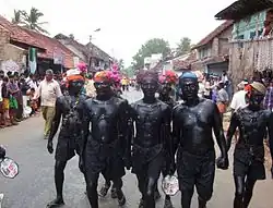 One can see many volunteers painted in black with charcoal; these men are guards who control the people standing on the road side to see the race, this is also called Kari Vela.