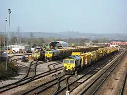 A marshalling yard was opened to the west of the station on 30 July 1946. It was used for many years by the British Railways' Civil Engineer and was home to a Ruston & Hornsby 0-6-0 diesel shunter, PWM652. After the end of this permanent way work the sidings were little used, mainly being a place to store unwanted or damaged wagons.