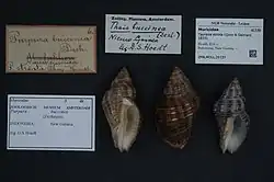 - Blainville, H. M. D. de. (1832). Disposition méthodique des espèces récentes et fossiles des genres Pourpre, Ricinule, Licorne et Concholépas de M. de Lamarck, et description des espèces nouvelles ou peu connues, faisant partie de la collection du Muséum d'Histoire Naturelle de Paris. Nouvelles Annales du Muséum d'Histoire Naturelle. 1: 189-263, pls 9-12
