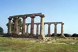 The Tavole Palatine ("Palatine Tables") are the remains of a hexastyle peripteral Greek temple of Magna Graecia the 6th century BC, dedicated to the goddess Hera and the god Apollo.[1] The temple, located near the Bradano river in the south of Italy, was part of a countryside sanctuary and remains of the wall of the temenos and of a very ancient altar are visible.[2]