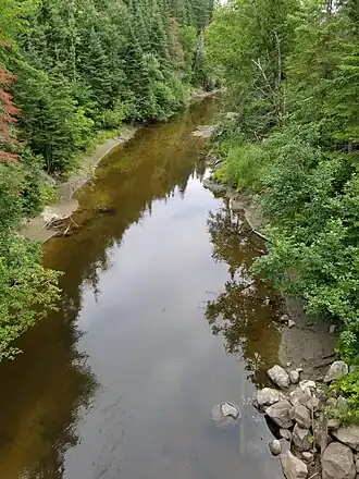 On nearly all the way, this river flows in forested areas. Although the river flows through agricultural areas, from about a mile above the village of Hervey-Jonction to its mouth, each bank maintains a wooded strip, of a width generally ranging from 50 to 100 meters.