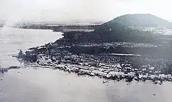 On 16 December 1941, during World War II, the Japanese invasion of Borneo began. After the first landing in Miri, the Japanese moved along the coastline of Borneo from the oil fields of Kuching and towards Jesselton. Life in Tawau continued as usual until 24 January 1942 when the Japanese were sighted off Batu Tinagat. The district officer Cole Adams and his assistant were expecting an attack at the shipyard but were instead arrested by the Japanese.[note 5] The Allies began counterattacking the Japanese in mid-1944 with the bombing of Tawau. From 13 April 1945, six massive air strikes were made on town, concentrating on the port facilities. The last and largest of these attacks was on 1 May 1945 when 19 Liberator bombers bombed Tawau until it was completely razed to the ground.[15] After an unconditional surrender of the 37th Japanese Army under Lieutenant General Masao Baba in mid-September at Labuan, 1,100 Australian soldiers in Sandakan under the command of Lt. Col. JA England marched into the Japanese bases at Tawau. A total of 2,900 Japanese soldiers of the 370th battalion under Major Sugasaki Moriyuki were taken as prisoners of war and transferred to Jesselton.[16][17]