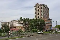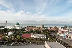 Tawau is on the south-east coast of Sabah surround by the Sulu Sea in the east, Celebes Sea to the south and shares a border with East Kalimantan (now North Kalimantan).[34][36][37] The town is approximately 1,904 kilometres from the Malaysian capital, Kuala Lumpur and is 540 kilometres south-east of Kota Kinabalu.[38] The main town area is divided into three sections named Sabindo, Fajar and Tawau Lama (Old Tawau).[39] Sabindo and Fajar are the main commercial areas while Tawau Lama is the original part of Tawau.