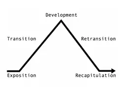 Two breakthroughs which, according to Brown, Austrian musicologist Hans Keller, Dutch musicologist Francis Maes and Soviet musicologist Daniel Zhitomirsky, came to Tchaikovsky while composing his Fourth Symphony, worked hand-in-hand in giving him a workable solution to building large-scale forms. The first answer was essentially to sidestep thematic interaction and keep sonata form only as an "outline," as Zhitomirsky phrases it, containing two contrasting themes.[82] Within this outline, the focus now centered on periodic alternation and juxtaposition. Instead of offering what Brown calls "a rich and well-ordered argument," Tchaikovsky integrates what Keller calls "new and violent contrasts" between musical themes, keys and harmonies by placing blocks of dissimilar tonal and thematic material alongside one another.[83] These blocks, Zhitomirsky explains, are demarcated by their distinct contrast in musical material and "by the fact that each theme [used in them] usually constitutes an independent and structurally complete episode."[84] The block containing the main theme, Zhitomirsky writes, alternates with the one containing the second theme. The former, he continues, is "steadily enlivened in reiteration" by what Warrack calls "ostinato figures, dramatic pedal–points, sequences that screw anticipation to a fever pitch with each new step, all expressed in frenzied rhythmic activity."[85] The result of this enlivening, Zhitomirsky says, is "that the very contrast of the two blocks is consistently sharpened."[82]