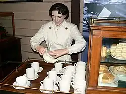 Tea ladies still exist in the National Health Service (NHS)[4] though the job of tea attendant is no longer restricted to women workers. Some hospital tea trolleys are operated by the Royal Voluntary Service.[5] Patients often comment on the tea ladies, and how their care made a hospital stay more bearable.[6][7]