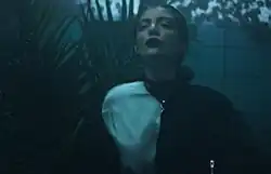 The video begins with shots of the ocean; The Daily Beast's editor Marlow Stern drew comparisons between the shots to Paul Thomas Anderson's drama film The Master (2012).[44] The scene revealed an unseen city with ruins of factories on an island and full of teens "without any parental guidance".[45][46] On Lorde's Facebook account, she further explained that world was "so different to anything anyone had ever seen, a dark world full of tropical plants and ruins and sweat".[43] Inside the ruins, she is seen as the "self-anointed" queen of the city's citizens in a "blue, foliage-filled universe".[44][45] Stern compared her image to that of The Hunger Games' fictional character Katniss Everdeen.[44] A young boy is transported to the island;[46] following his arrival, he must joust on a motorbike to become a part of Lorde's "team".[41][47] He loses;[47] Lorde commented that "sometimes the person who loses is stronger".[43]
