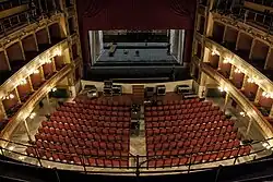The Biondo Theatre (Italian: Teatro Biondo, complete name Teatro Biondo Stabile) is a neoclassical and Art Nouveau-style theater building located on Via Roma #258, corner with Via Venezia, in the ancient quarter of Castellamare of central Palermo, region of Sicily, Italy. Diagonally across Via Roma is the ancient church of Sant'Antonio Abate and a stairwell descending into the warrens of the Vucciria Market.
