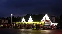 Between the population shifting west in the city and Route 66 drawing more crowds, the Chippewa store became the flagship location. Its season extended to more of the year, while the shop on Grand shortened its seasonal operation. In the weeks leading up to Christmas, Ted Drewes began selling live Christmas trees.[6] In the wake of the transition, the Chippewa store expanded its building and bought a neighboring property to accommodate parking. By 2006, the company was making more than 150,000 gallons of custard every year.[7]