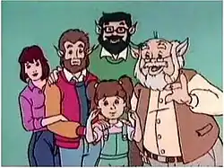 Scott Howard and his family now live in the fictional town of Wolverton, a small town constantly drawing tourists because of its history of werewolf sightings.[3] (In the film the town was called 'Beacontown'.) Scott was an only child who lived with his father in the film, the cartoon gave him a little sister and grandparents.