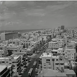 In 1925, the Scottish biologist, sociologist, philanthropist and pioneering town planner Patrick Geddes drew up the Geddes Plan for Tel Aviv, a master plan for Tel Aviv which was adopted by the city council led by Meir Dizengoff. Geddes's plan for developing the northern part of the township was based on Ebenezer Howard's garden city movement.[55] The plan consisted of four main features: a hierarchical system of streets laid out in a grid, large blocks consisting of small-scale domestic dwellings, the organization of these blocks around central open spaces, and the concentration of cultural institutions to form a civic center.[56] While most of the northern area of Tel Aviv was built according to this plan, the influx of European refugees in the 1930s necessitated the construction of taller apartment buildings on a larger footprint in the city.[57]
