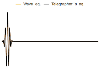 These equations resemble the homogeneous wave equation with extra terms in V and I and their first derivatives. These extra terms cause the signal to decay and spread out with time and distance. If the transmission line is only slightly lossy ( and ), signal strength will decay over distance as where .[16]
