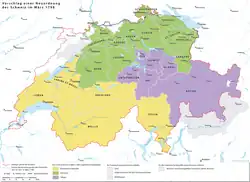 On 16 March 1798, eleven days after occupying Bern, General Brune proclaimed the partition of Switzerland into three states: