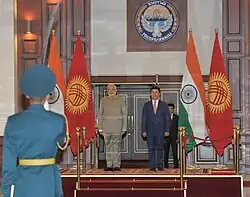 Temir Agrembaevich Sariyev (Kyrgyz: Темир Агрембаевич Сариев, romanized: Temir Agrembayevich Sariyev, [temir sɑˈrijev]) (born 17 June 1963) is a Kyrgyz politician who was Prime Minister of Kyrgyzstan from 2015 to 2016.[3] He was a presidential candidate for the 2009 elections, receiving 157,005 (6.74%) votes.[4] Sariyev was a candidate in the country's 2017 presidential elections, in which he garnered 2.54% of the vote (42,910 votes) and came in fourth place.[5][6]