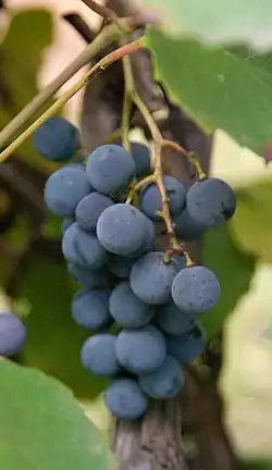 Tamjanika, Temjanika or Tamyanka (Serbian: тамјаника, Macedonian: темјаника, Bulgarian: тамянка) is a type of grape, a variety of Muscat Blanc à Petits Grains, grown in Serbia, North Macedonia and Bulgaria. It is named after tamjan ("frankincense"), due to the intense scent from the ripe grapes, which can be detected several metres away. The berries are small, very dark purple, almost perfect spheres. They ripen in mid September.