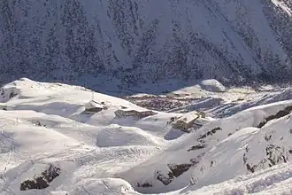 Temple Basin is a club skifield in Arthur's Pass, in New Zealand's South Island. Operated by two clubs, the Temple Basin Ski Club and the Canterbury University Snow Sports Club, the ski area has 3 rope tows, two on-site lodges, two shelters and a ski school and ski shop. The tows cover an elevation range of 1326–1753 metres, for a skiable domain of 320 hectares. The field claim's to have the best big mountain and variety of terrain in New Zealand and has been highly recommended by adventure skiers on several occasions.[1][2] The ski area is accessed on foot via a walking track from the Temple Basin Car Park within Arthers Pass. Temple Basin Ski Club operates a motorised goods lift to carry patrons gear and other equipment.