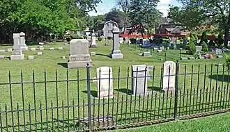 As of 2009, the cemetery contained 274 burials, arranged in rows and divided into family plots. Most of the graves are marked with headstones, nearly all of marble or granite. Markers are typically modest, with little ornamentation. The oldest burials are located in the northwest corner of the cemetery along West Avenue, with the graves becoming newer farther away.[2]