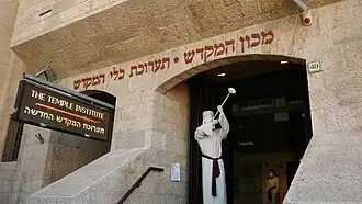 The Temple Institute, known in Hebrew as Machon HaMikdash (Hebrew: מכון המקדש), is an organization in Israel and the Palestinian Authority focusing on establishing the Third Temple. Its long-term aims are to build the third Temple in Jerusalem on the Temple Mount—the site occupied by the Dome of the Rock—and to reinstate korbanot and the other rites described in the Hebrew Bible and Jewish legal literature. It aspires to reach this goal through the study of the previous Temples' construction and rituals and through the development of Temple ritual objects, garments, and building plans suitable for immediate use in the event conditions permit the Temple's reconstruction.[1] It runs a museum in the Jewish Quarter of the Old City of Jerusalem.[2] It was founded and is headed by Rabbi Yisrael Ariel.[3] Its current director-general is Dovid Shvartz. New York billionaire Henry Swieca has supported the Institute.[4] The Israeli government has also provided funding.[5][6]