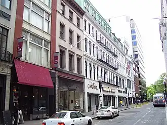 Temple Place Historic District is a national historic district at 11-55, and 26-58 Temple Place in Boston, Massachusetts. The district encompasses a set of fifteen well-preserved 19th and early-20th century buildings representing the increasing commercialization of the area, which was a fashionable upper-class address in the late 18th century. The earliest buildings date from the 1830s and are Greek Revival in style. Three buildings (29-43 Temple Place) were designed by noted Boston architect Nathaniel J. Bradlee, and are rare surviving examples of his work which predate the Great Boston Fire of 1872; one building (25-27 Temple) was designed by Peabody and Stearns.[2]