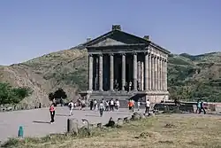 The Garni Temple[b] is a classical colonnaded structure in the village of Garni, in central Armenia, around 30 km (19 mi) east of Yerevan. Built in the Ionic order, it is the best-known structure and symbol of pre-Christian Armenia. It has been described as the "easternmost building of the Greco-Roman world"[7] and the only largely preserved Hellenistic building in the former Soviet Union.[c]