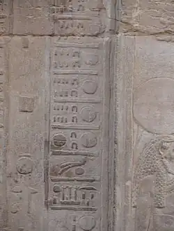 The texts and reliefs in the temple refer to cultic liturgies which were similar to those from that time period. The temple itself had a specific theology. The characters invoked the gods of Kom Ombo and their legend. Two themes were present in this temple: the universalist theme and the local theme. The two combine to form the theology of this temple.[4] A temple was already built in the New Kingdom to honor these gods, however, this site gained in importance during the Ptolemaic Kingdom. Little remains of the New Kingdom temple.[4] The existing temple was begun by Ptolemy VI Philometor (180–145 BC) at the beginning of his reign and added to by other Ptolemies, most notably Ptolemy XIII Theos Philopator (51–47 BC), who built the inner and outer hypostyles. The scene on the inner face of the rear wall of the temple is of particular interest, and "probably represents a set of surgical instruments".[2]