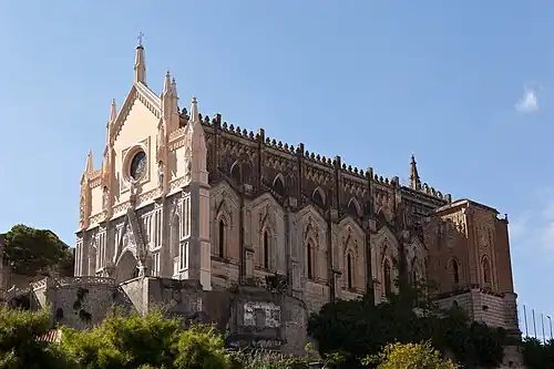 The building is located on the slope of Mount Orlando facing the Gulf of Gaeta, in a dominant position over the city's historic center; it is sometimes mistakenly referred to as the city cathedral because of its scenic location and elaborate architecture.[4][5]