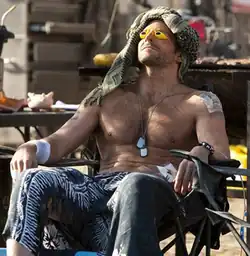 Benedict had a small cameo, which he reportedly regretted.[9] In the scene before Face's escape from the disciplinary barracks, he (Cooper) is approaching a tanning bed and asks Benedict's character what to do about his face. Benedict answers, "You don't mess with it, kid."