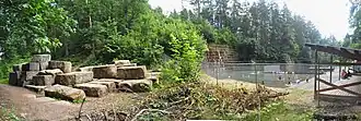 The quarry opened as early as 1889[2] and closed in the 1920s after the Tenino Stone Company shuttered in 1918.[3][4] Abandoned, the area was closed and was deemed a no-trespassing zone. The formation filled with spring water and the quarry became an unofficial pool in the community.[4][2][3]