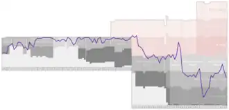 In 2000, the club changed its logo to read Tennis Borussia Berlin which became the official club name in 2005. The club had always been known under this moniker and to avoid being mistaken as a tennis club. It continued playing in the fourth tier – fifth after the introduction of the 3. Liga in 2008 – until 2009, when they won the Oberliga championship and gained promotion again to the Regionalliga Nord. After running into financial difficulties once again, the club went into administration and dropped back down to the NOFV-Oberliga Nord (V) for the 2010–11 season.[2] Seen as one of the pre-season favourites for a second successive relegation, they managed to reach the relegation playoffs at the end of the campaign, but finally lost out 3–1 to SC Borea Dresden over two legs to be relegated to the sixth tier of the German football league system, the Berlin-Liga, for the first time in their history.[3][4][5]