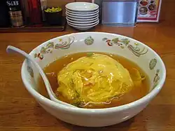 Tenshindon (Japanese: 天津丼), also known as tenshinhan (Japanese: 天津飯), is a Japanese Chinese specialty, consisting of a crab meat omelette on rice,[1] named after Tianjin in northern China.[2]