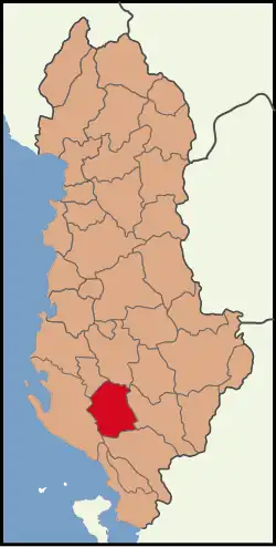Tepelenë District (Albanian: Rrethi i Tepelenës) was one of the 36 districts of Albania, which were dissolved in July 2000 and replaced by 12 newly created counties. It had a population of 32,465 in 2001, and an area of 817 km2 (315 sq mi).[1] It was in the south of Albania, and its capital was the city of Tepelenë. Its territory is now part of Gjirokastër County: the municipalities of Tepelenë and Memaliaj.