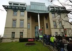 On March 19, 2004, alumnus David Tepper, founder of hedge fund Appaloosa Management, announced that he would make a single donation of $55 million to Carnegie Mellon University's Graduate School of Industrial Administration.[15] This donation was made after he had been encouraged by Kenneth Dunn, his former professor (who became dean of the school). Tepper accepted the suggestion but made the contribution a “naming gift” and suggested that the school's name be changed to the David A. Tepper School of Business.[16] In November 2013, Carnegie Mellon announced another gift of $67 million from Tepper to develop the Tepper Quadrangle on the north campus. The Tepper Quad includes a new Tepper School facility across the street from the Heinz College as well as other university-wide buildings and a welcome center which serves as a public gateway to the university. The Tepper Quad was dedicated on September 13, 2018.[17]