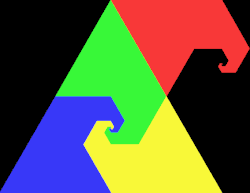 The horned triangle, created by erecting a series of smaller triangles on one corner of an equilateral triangle, is another example of a teragon. It is also an example of a rep-tile, or shape that can be completely dissected into smaller copies of itself.