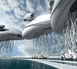 They are the winners of ARCHITECT R+D Awards, [7] and the Victor Papanek Social Design Award [8] sponsored by the University of Applied Arts Vienna, the Austrian Cultural Forum New York, and the Museum of Arts and Design. Terreform ONE is equally honored with the Zumtobel Group Award for Sustainability and Humanity for the project, New York City Resource & Mobility.[9] Terreform was also a recipient of the Infiniti Design Excellence Award for the History Channel City of the Future competition.[10] They have earned a Bronze Medal from iGEM (International Genetically Engineered Machine) for the Gen2Seat fully organic chair product.[11] In 2013, Terreform ONE were winners of the AIA New York Urban Design Merit Award for their Urbaneer: Resilient Waterfront Infrastructure work.[12] The group also received an Architizer A+ Award for the Bio City World Map of 11 Billion.[13]