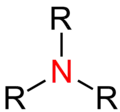 | Red highlighted central atoms in various groups of chemical compounds. Tertiary central atoms compared with primary, secondary and quaternary central atoms. | ||||