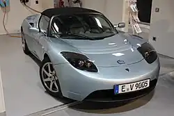 The original Tesla Roadster[123] was a two-seater sports car, evolved from the Lotus Elise chassis.[124] It was produced from 2008 to 2012. The Roadster was the first highway-legal serial production electric car to use lithium-ion battery cells, and the first production all-electric car to travel more than 200 miles (320 km) per charge.