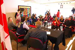 The Administration of Justice Agreement (AJA) recognizes Teslin Tlingit Council's jurisdiction to administer justice. Signed by representatives of the Government of Canada, Government of Yukon and TTC on February 21, 2011, it is the first agreement of this sort to come into effect in Canada; putting TTC at the forefront of autonomous aboriginal governance in the nation.[2]