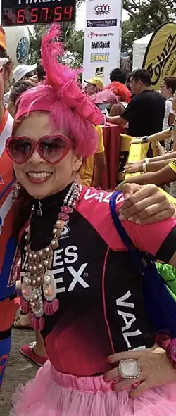 Prieto-Valdes is a certified scuba diver.[17] She is also an avid marathon runner and triathlete, having completed the New York City and Paris marathons, often joking that she cares less about her finish time than about taking the most photos in her flamboyant running outfits.[17] Other hobbies of hers include golf, yoga, and pole-dancing.[1]
